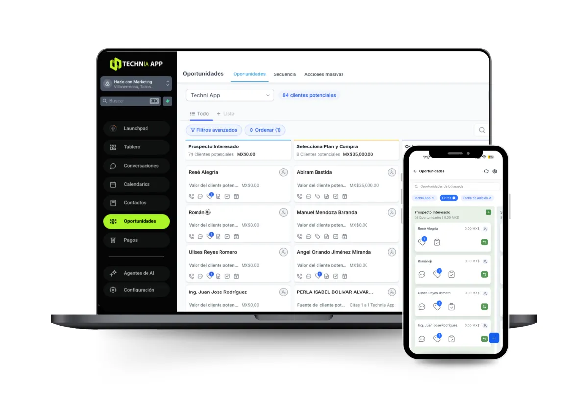 Captamos prospectos continuamente vía anuncios, códigos QR y landings personalizadas; cada punto de entrada se integra automáticamente al sistema central de TECHNIA para seguimiento inmediato